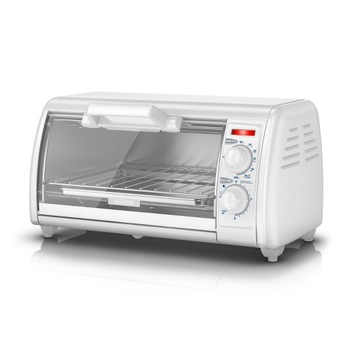 Up to 5 cash back Black Decker black 4-slice countertop toaster oven is great for cooking snacks and is features 30 min timer. Bake chicken broil vegetables and keep food warm for serving.