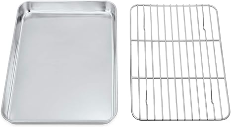 Amazon Com P P Chef Toaster Oven Tray And Rack Set Stainless Steel Baking Pan With Cooling Rack Fit Your Small Oven Single Person Use Non Toxic Easy Clean Kitchen Dining