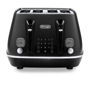 Full View Of The Toaster 4 Slice Black By Delonghi Scultura Ctz4003 Bk Toaster Black Toaster Retro Toaster